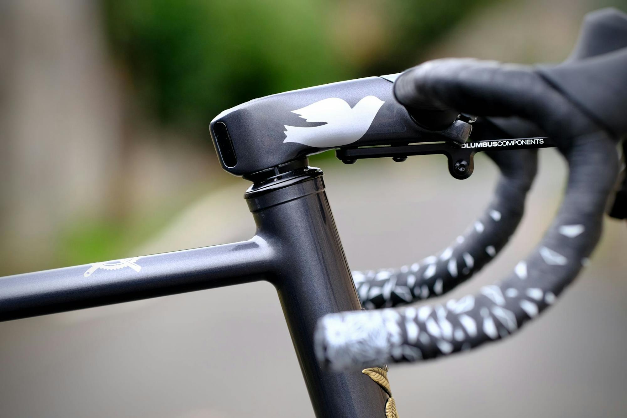 The two-tone black and white Supacaz bar tape completes this sober and unique package.