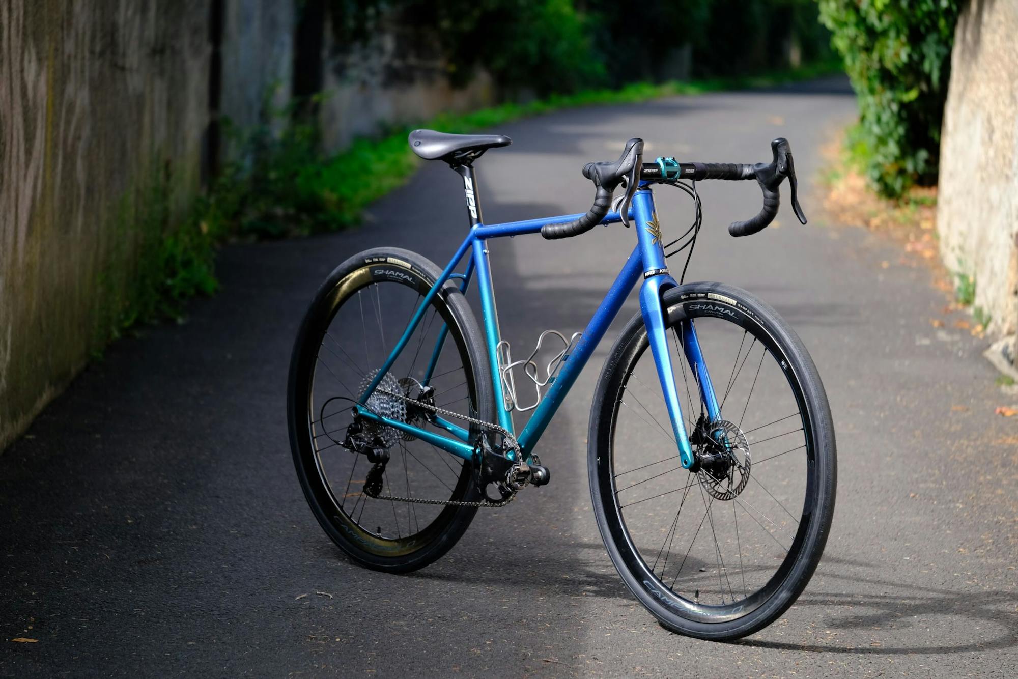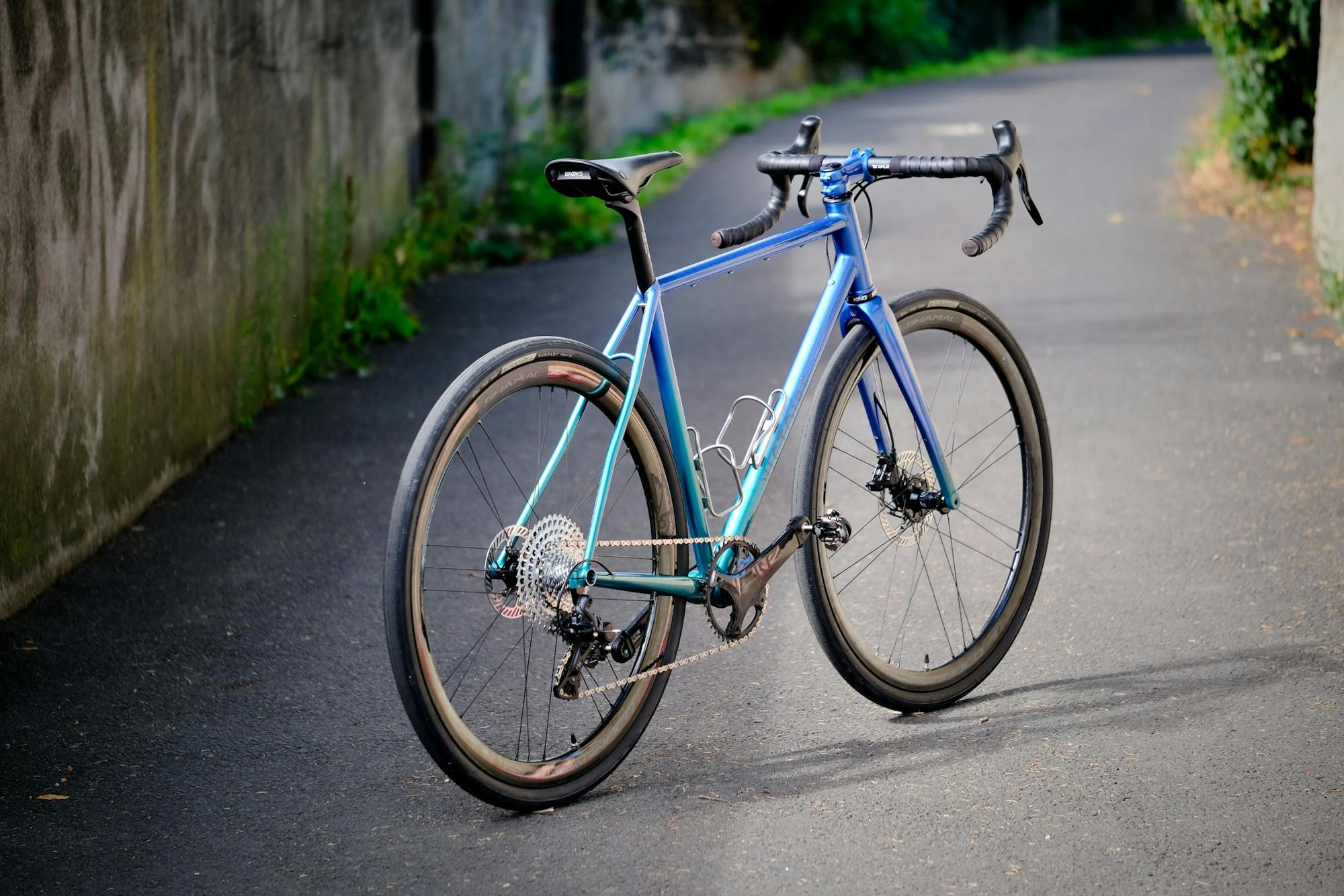 For the paintwork, Benjamin gave us carte blanche, with the only hint being he was inspired by the Victoire n°507 and he instructed us to draw inspiration from his home region: "between lakes and mountains". We chose two colors to keep the look of the bike simple and sober. The blue recalls the depth of alpine lakes, and the green the mountain forests. These colors are reminiscent of those on the bike we designed for the Chris King Open House in 2021.