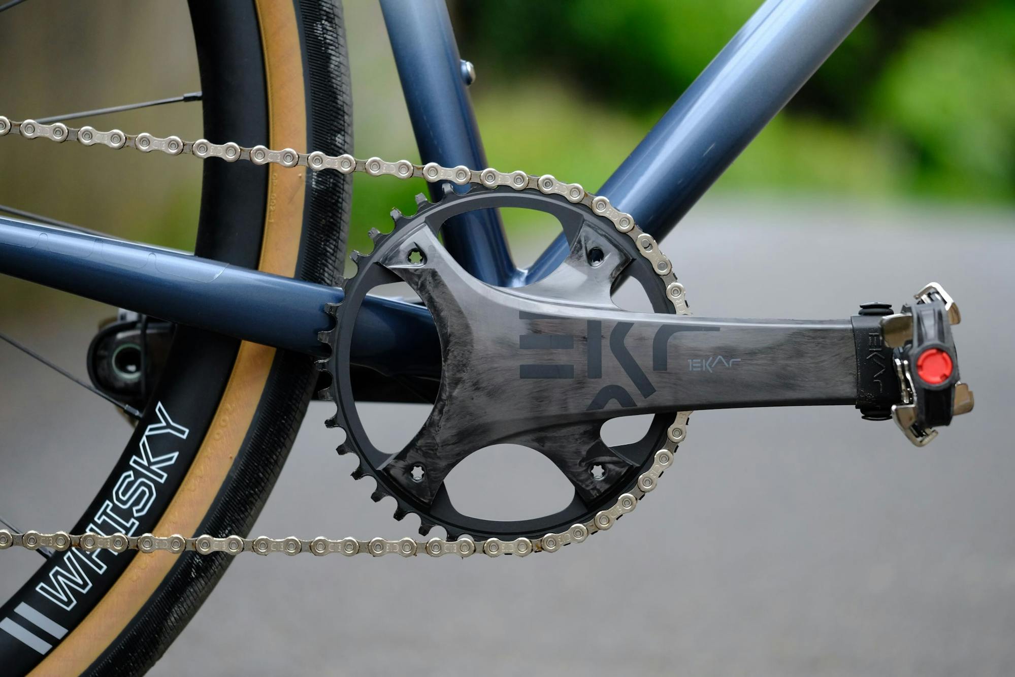 David's bike has Campagnolo Ekar group, perfect for mixed use road / light gravel. Made in Europe, these 13 speeds offer a large transmission range, so he can easily go from road to steep gravel.