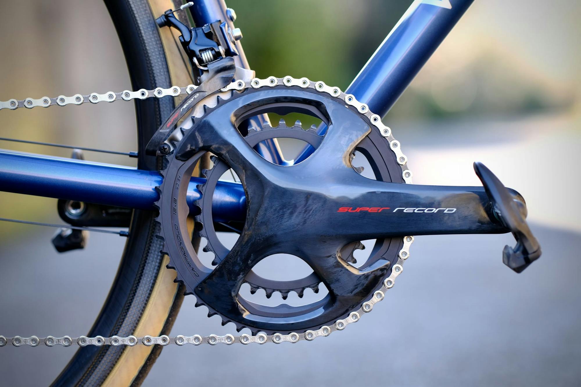 To complete the configuration of this sporty bike, what better drivetrain than the Campagnolo's Super Record rim brake version ? Lightweight and uniquely ergonomic, this high-end groupset illustrates the Italian manufacturer's commitment to performance and cycling tradition.