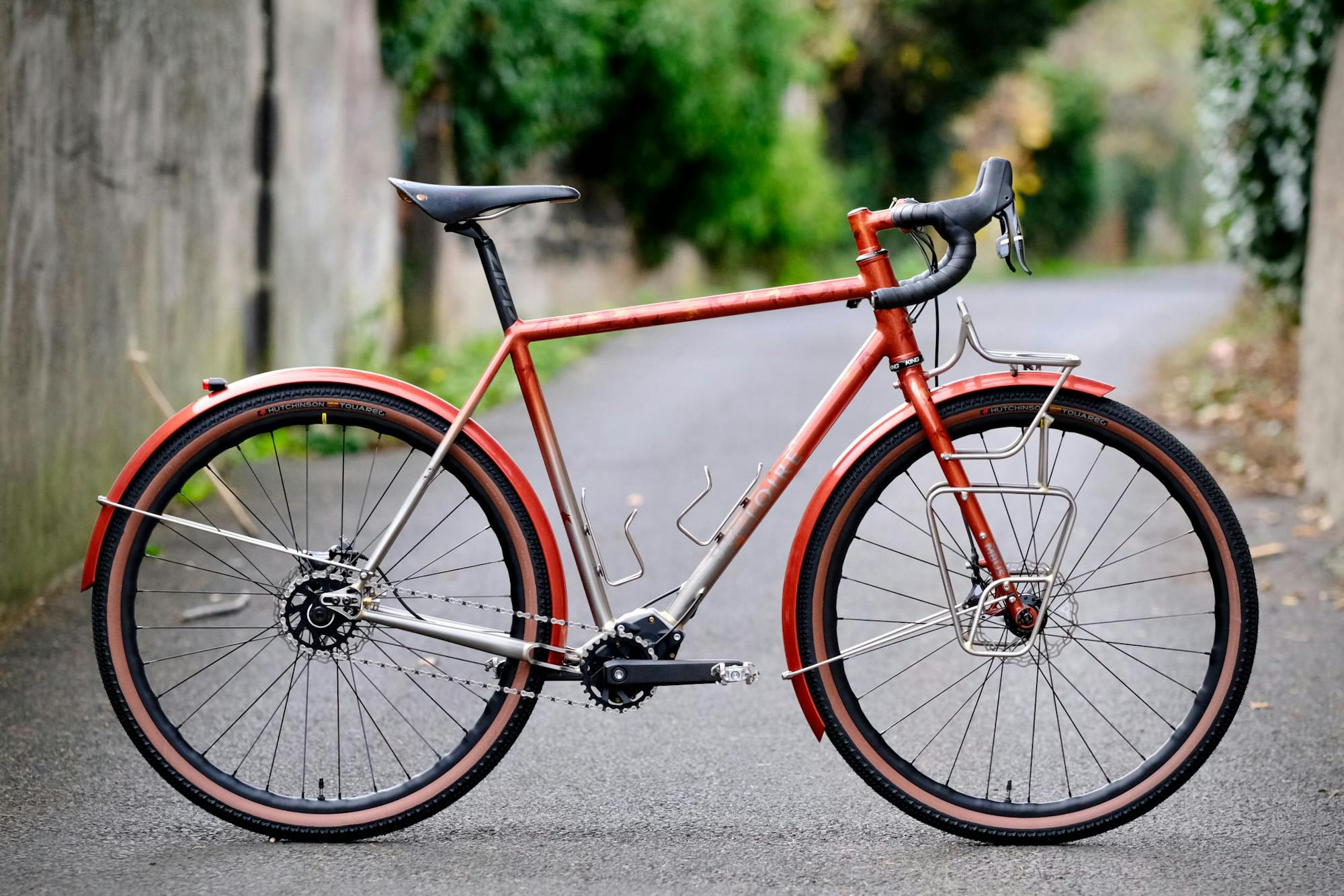 Michel wanted an all-round bike that would be equally at home in the city or on the trails. We designed a "low trail" geometry to match Michel's urban and travel use. The bike is stable and efficient, even when heavily loaded with luggage. It's a real rail, ideal for long-distance riding.