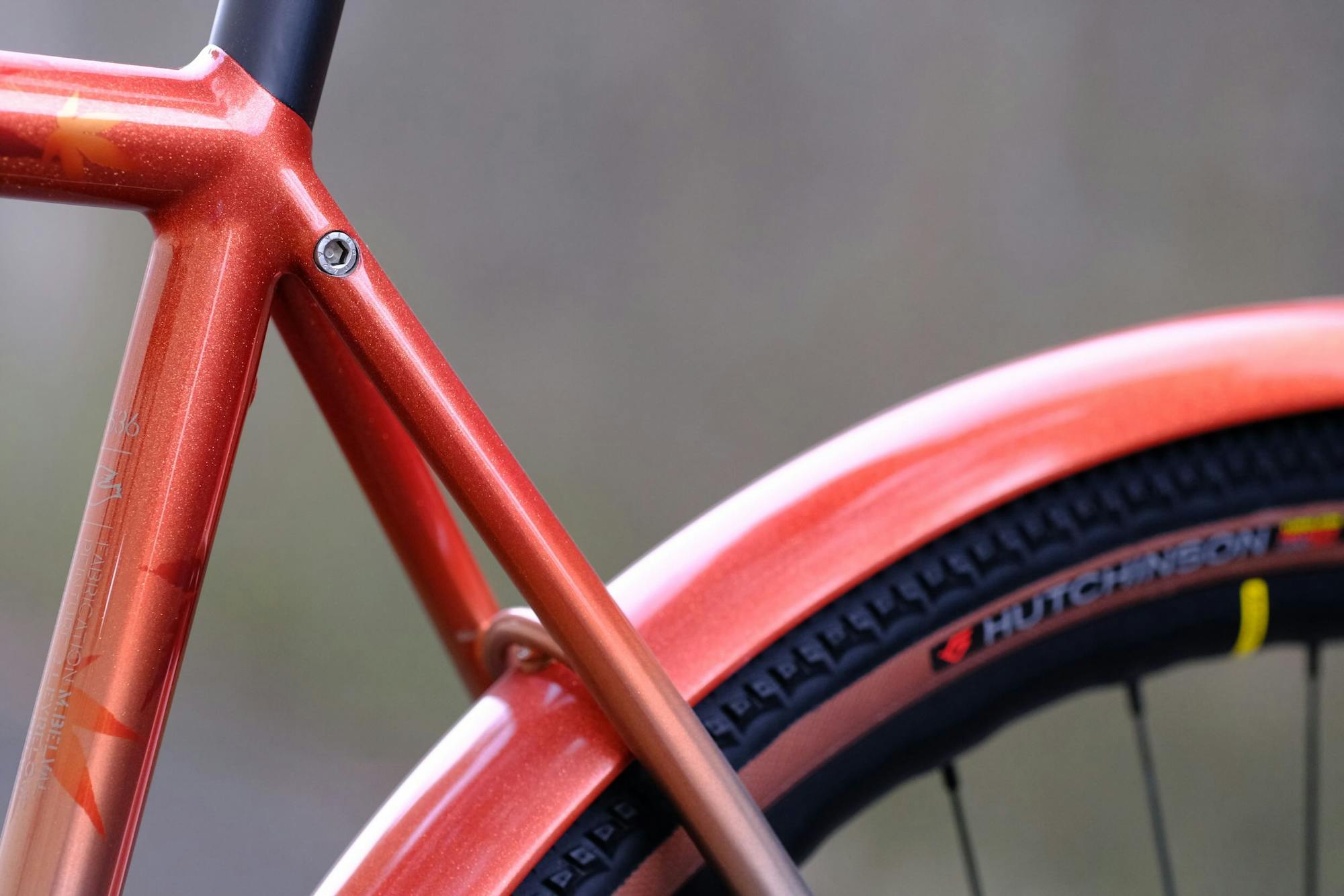 Michel chose stainless steel for his frame: this guarantees the bike's durability. As is often the case, we used XCr tubes from Italian manufacturer Columbus. This choice leaves the weld seams visible on the lower part of the frame and on the luggage rack, this area being simply protected by an ultra-resistant powder-coated finish.