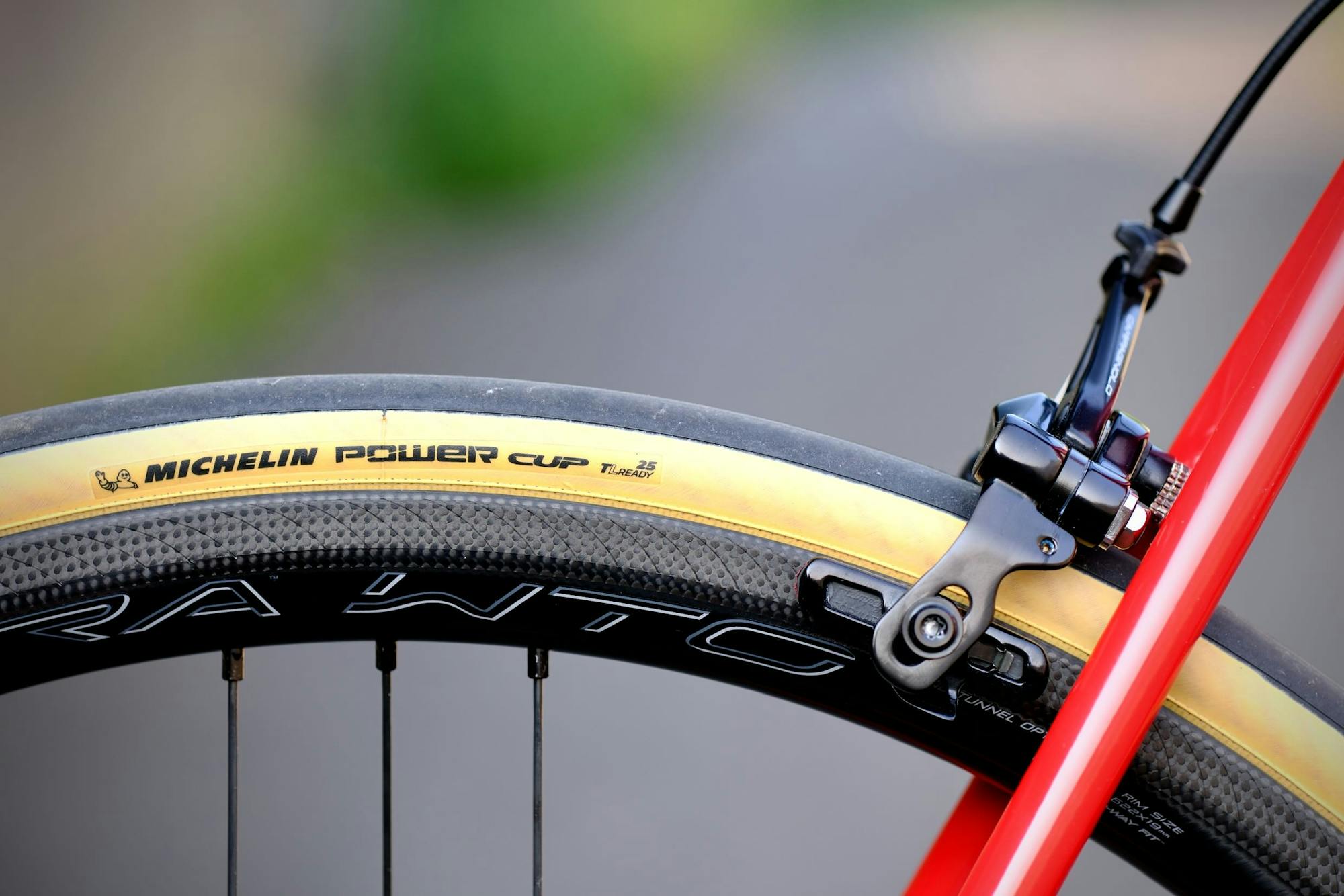 The red of the brake pads, the symbol of Campagnolo's Record range, discreetly recalls the bright red of the frame.