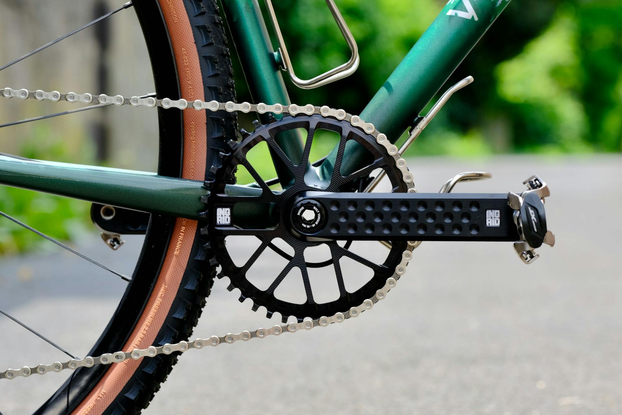 We chose an Ingrid crankset for its robustness and its unique aesthetics. The honeycomb structure was originally developed to lighten the crank arms and now forms part of this Italian manufacturer’s distinctive look.