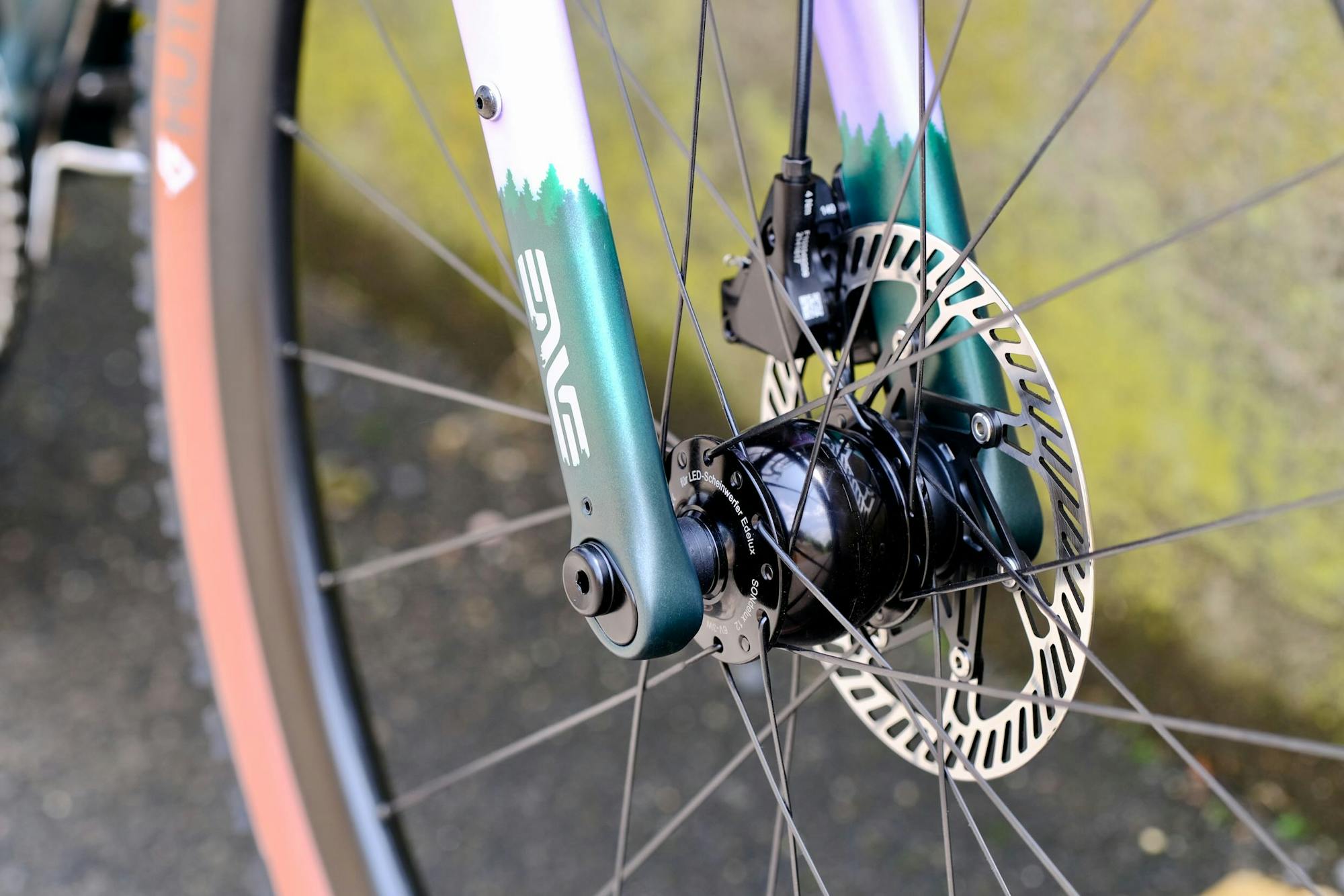 Finally, the Enve logos on the fork and Victoire on the down tube are partly blended into the forests, a visual effect that adds depth to the paintwork.