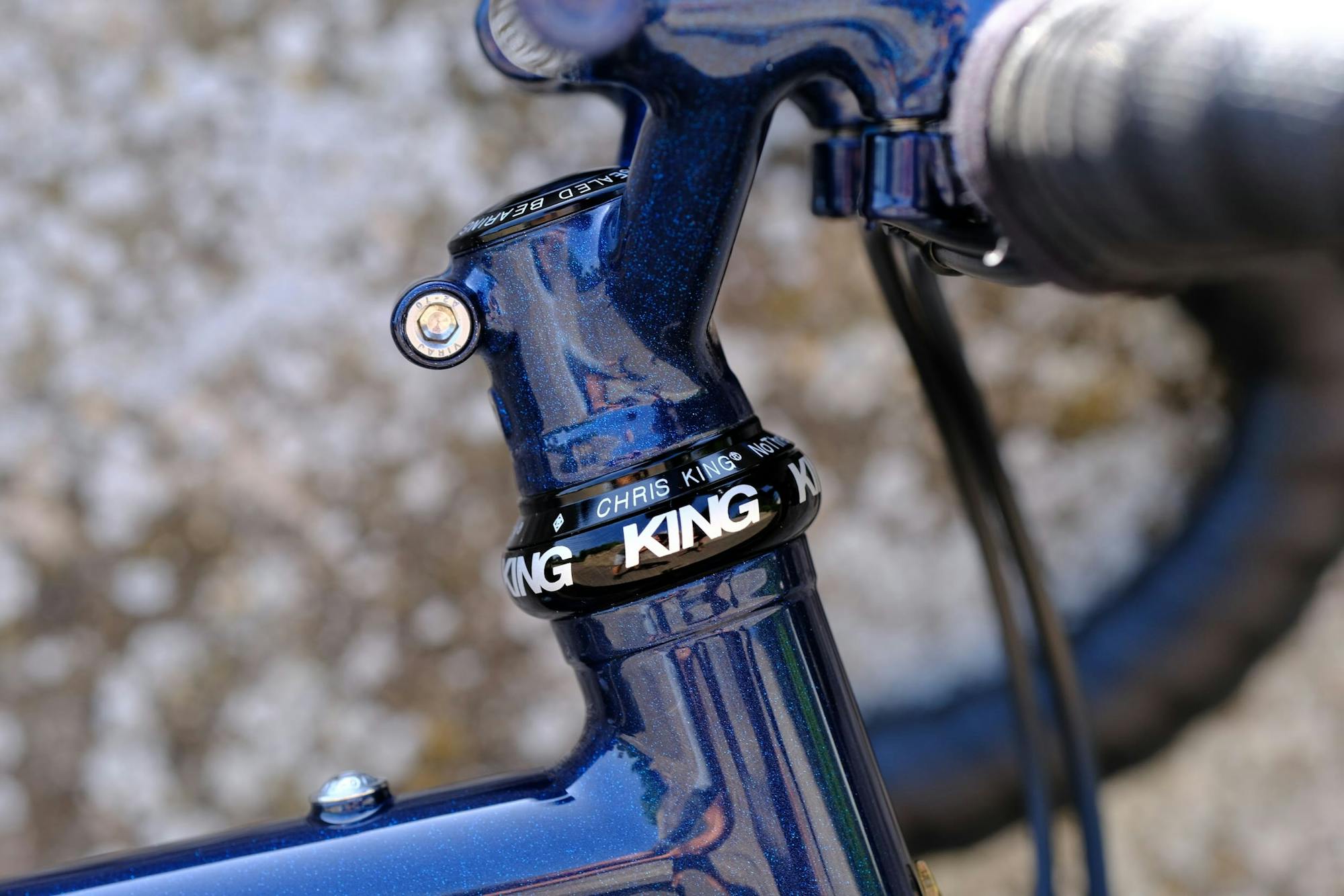 To complete this iconic project for a steel randonneuse to run a Paris-Brest-Paris, the only conceivable material for the saddle is leather. We are fortunate to have exceptional manufacturers in France, and often work with Berthoud or Idéale. Here we've fitted a Berthoud Aravis, whose modern lines blend perfectly with the profile of the bike.