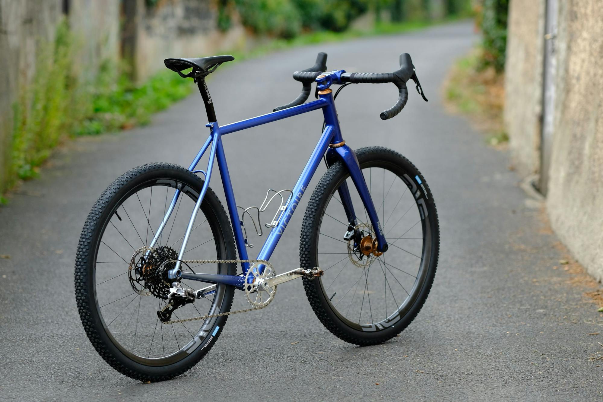 «The original idea was to design a machine for adventure, capable not only of cruising on American-style dirt roads, but also of riding the singletracks of the Chaîne des Puys and crossing unpaved Alpine passes. Another key aspect of my project was local manufacturing (I grew up less than a kilometer from the Victoire shop). This reflects exceptional know-how, and the components picked for this build are consistent with this approach, as they are all crafted in small batches (CK, Enve, White Industries…), as opposed to the ubiquitous fast-fashion within the bike industry.»