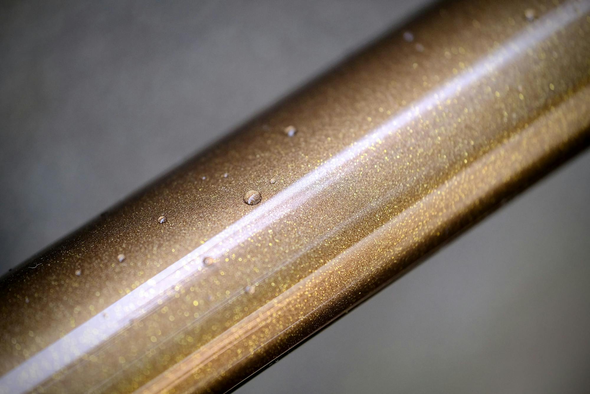 As is often the case with stainless steel frames, we kept the natural color of the exposed steel on the rear of the frame. It blends perfectly with the gold color of the bike.