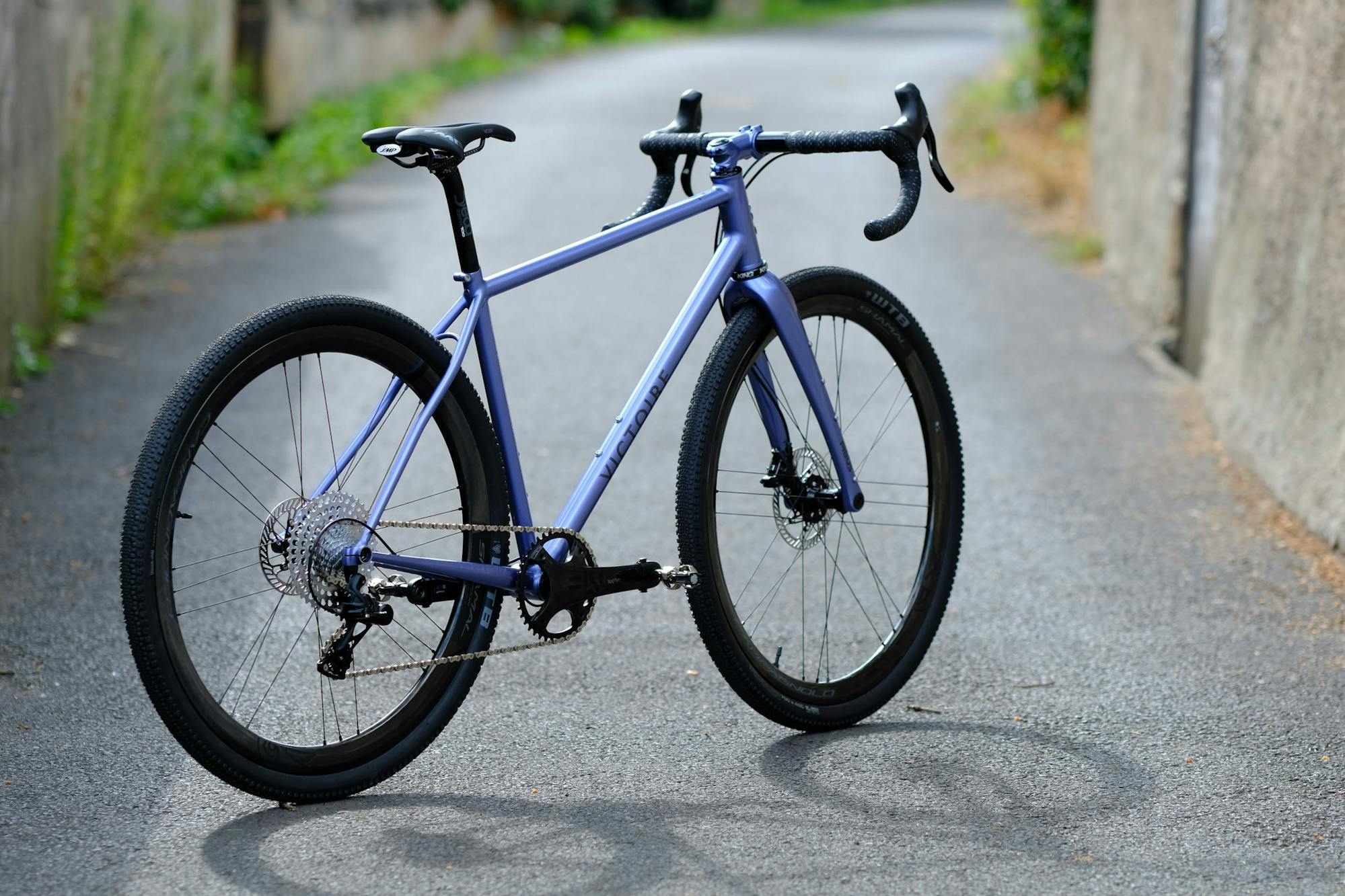 ce vélo, commandé par Campagnolo, va désormais être envoyé à la presse pour différents essais. La géométrie présente quelques avancées que nous testons depuis quelques temps chez Victoire. elle s'éloigne un peu plus d'un vélo de route classique avec une tube supérieur plus long, une potence plus courte et un angle de fourche plus couché. Ces modifications associées aux pneus à gros volume rendent le vélo très stable sur terrains défoncés et apportent entière satisfaction.