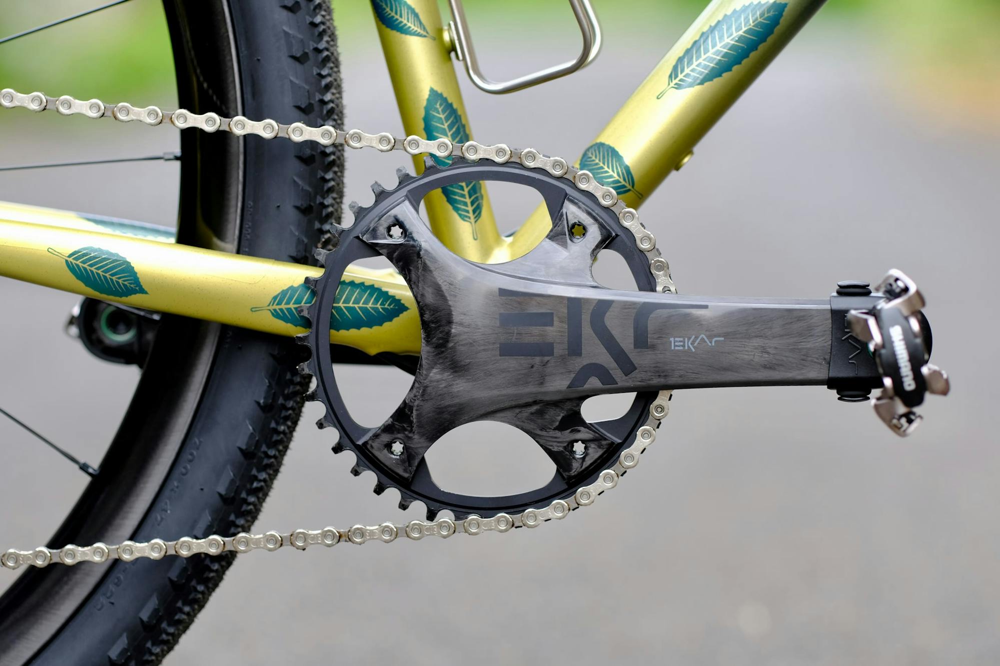 Grégoire a choisi le groupe Campagnolo Ekar, le groupe gravel le plus léger du marché, avec une très grande plage de développement afin de passer partout. Sensible à l'écologie et au développement durable, Grégoire ne souhaitait pas d'électronique sur son vélo. Le groupe Ekar, de fabrication européenne, lui apportera fiabilité et performance tout en étant en accord avec ses convictions.